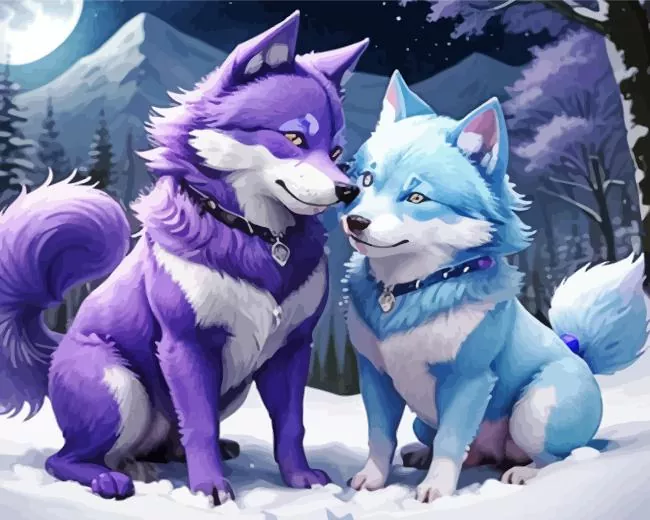 Blue And Purple Wolf Diamond Painting