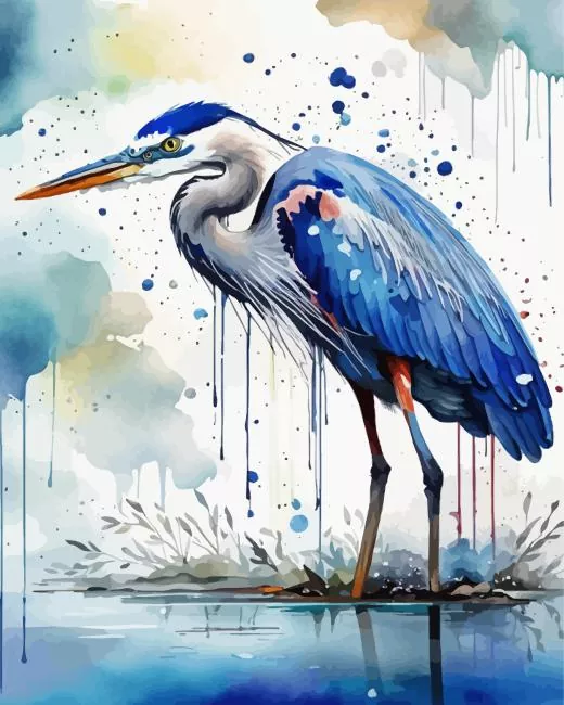 Blue Splatter Heron Diamond Painting