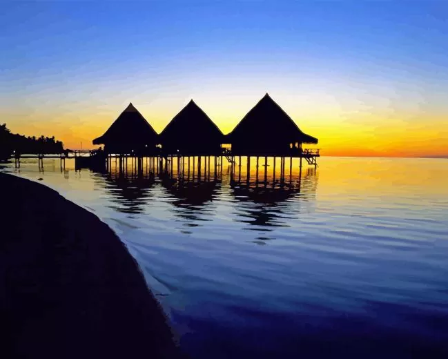Bora Bora Huts Silhouette Diamond Painting