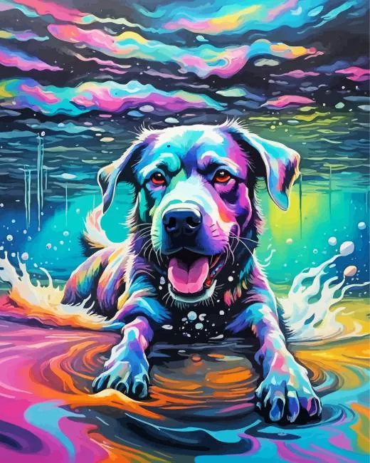 Colorful Dog Swimming Diamond Painting