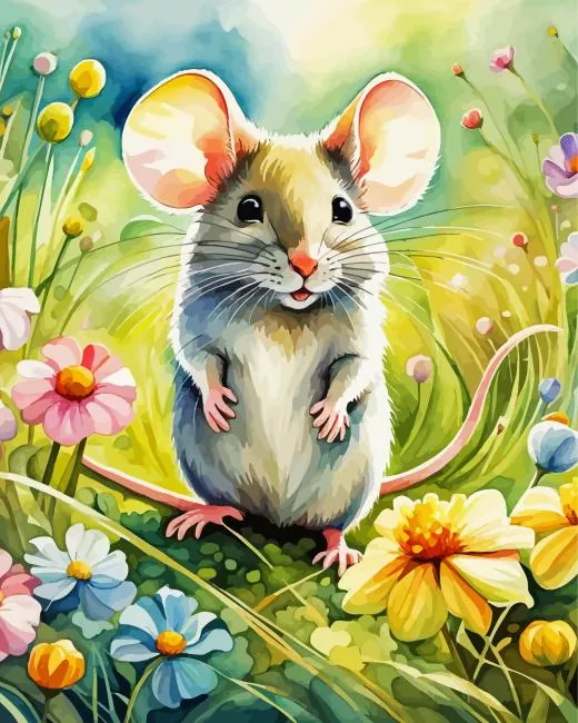 Cute Mouse And Flowers Diamond Painting