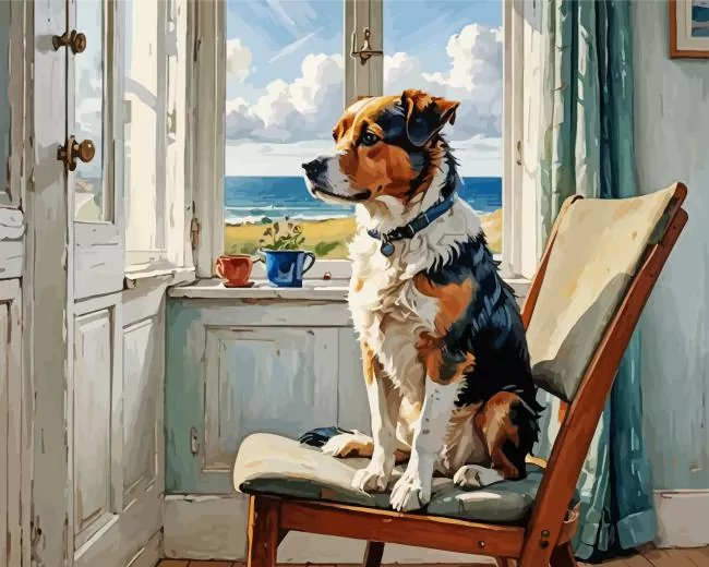 Dog Looking Out Of Window Diamond Painting