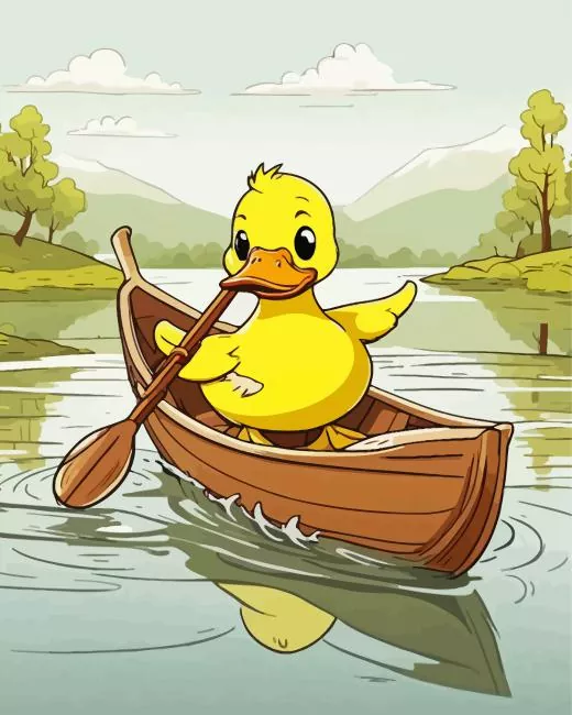 Duckling On Brown Boat Diamond Painting