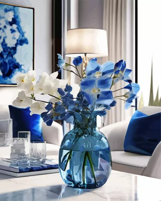 Flowers In Blue Glass Vase Diamond Painting