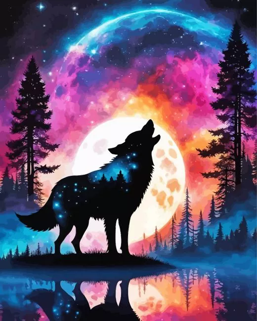 Galaxy Wolf Silhouette Diamond Painting
