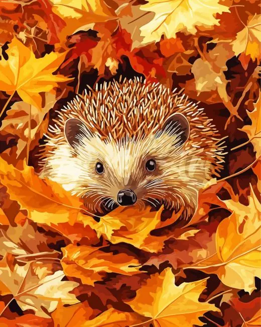 Hedgehog With Leaves Diamond Painting