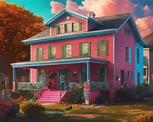 Pink And Blue House Diamond Painting