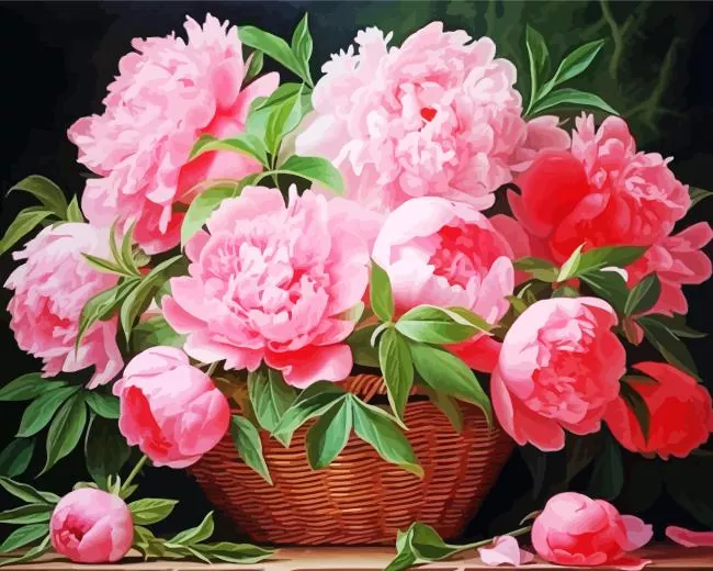 Pink Peonies Bouquet Basket Diamond Painting