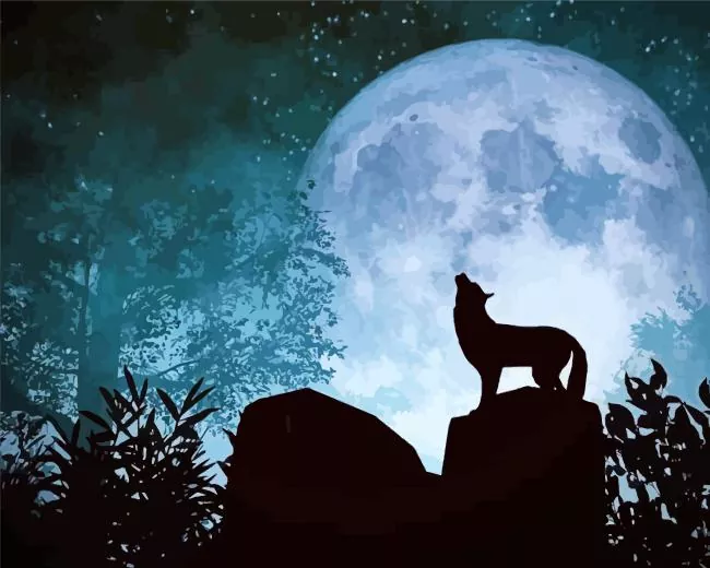 Wolf In The Moon Diamond Painting